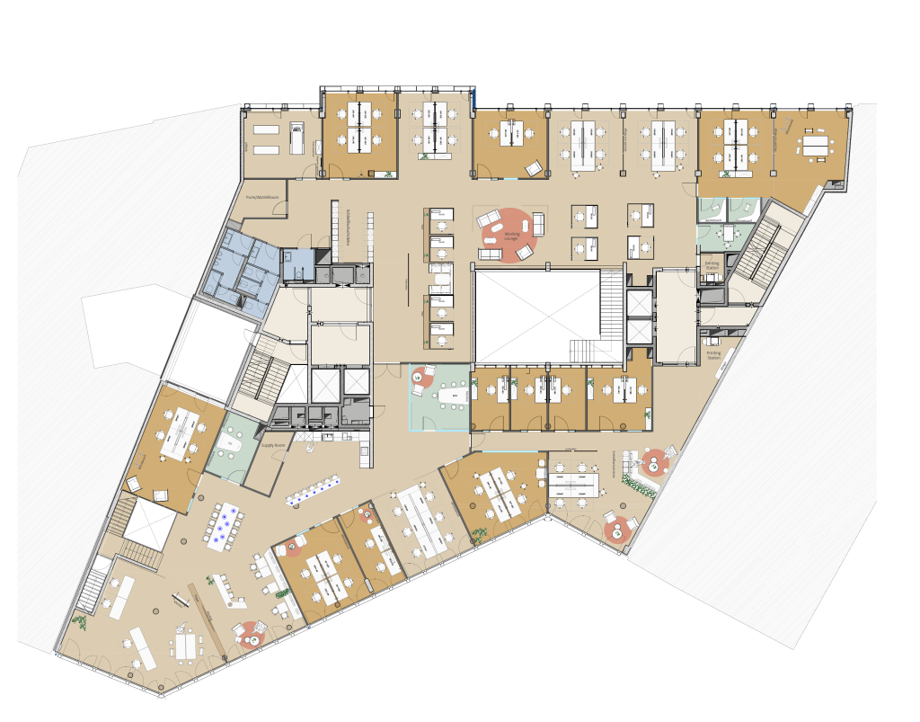 Wir verorten Ihre Organisation und Arbeitsweise präzise in der Bürofläche. Wir planen neue Raumsituationen und gestalten Ihren individuellen Grundriss, sodass Mensch und Organisation optimal im Raum agieren können.