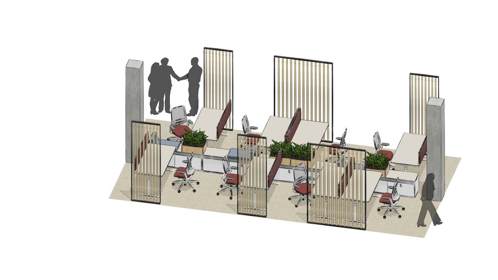 Wir entwerfen die konkrete Platzierung von Teams und Funktionsbereichen unter Berücksichtigung von Laufwegen und Ergonomie.