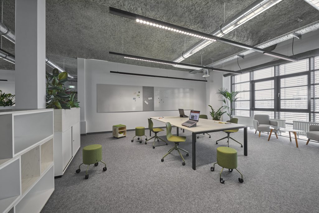 Als Rückzugsort für fokussiertes Arbeiten oder für spontane Meeting gibt es geschlossene Räume.