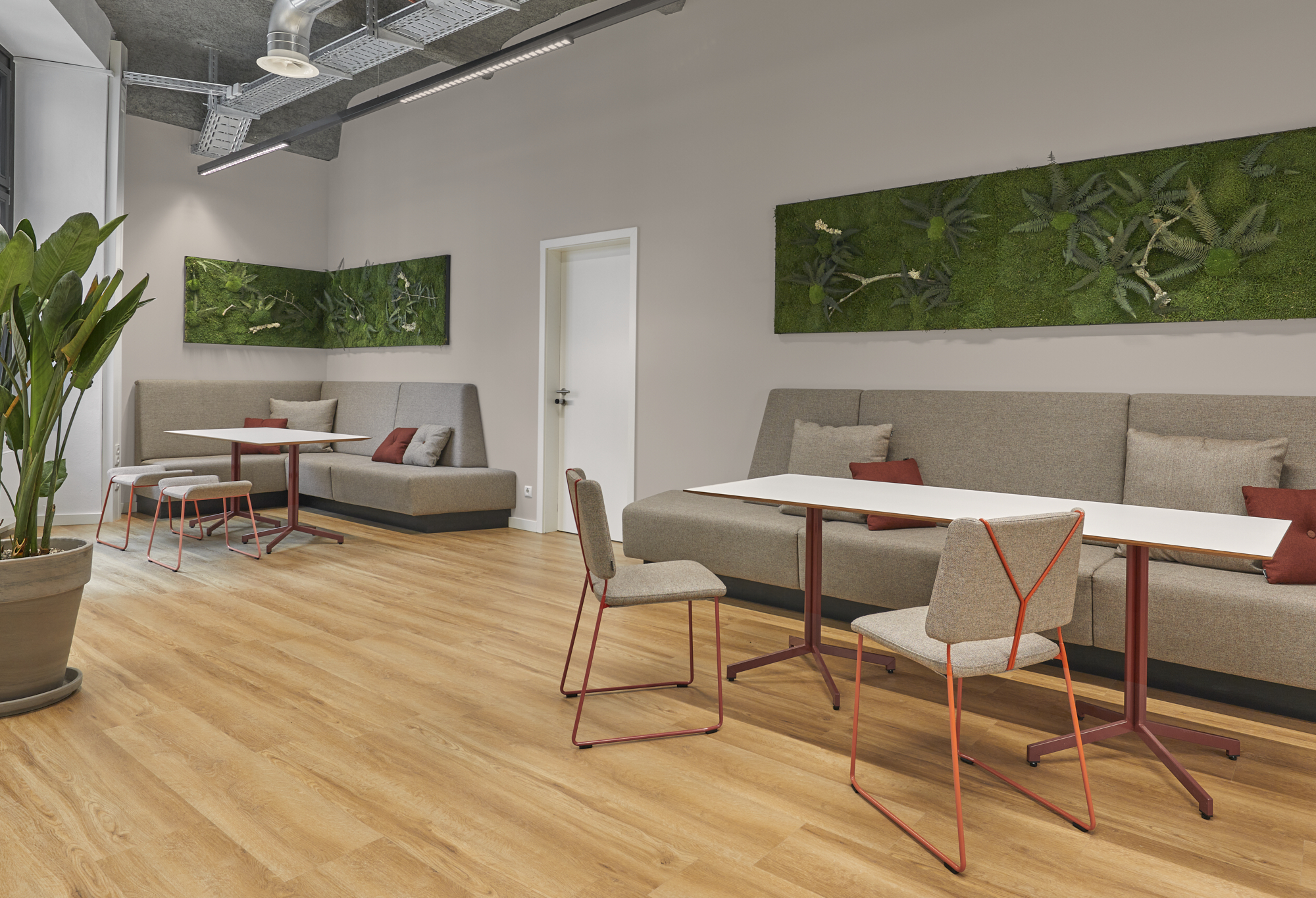 Die Welcome Area ist Dreh- und Angelpunkt für Mitarbeiter und Gäste und bietet eine Vielzahl an Nutzungsszenarien.