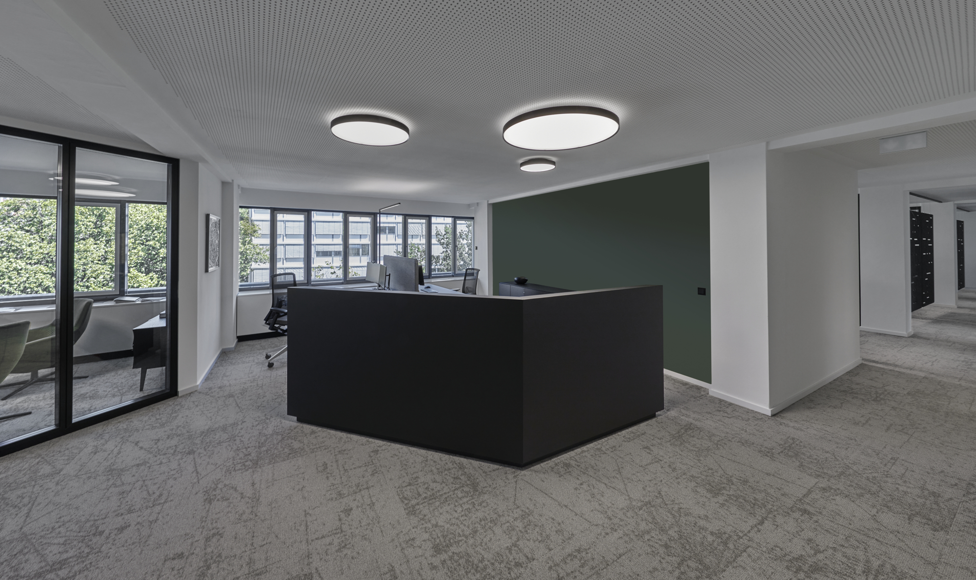 Wir haben eine Fläche kreiert, die einladend, dynamisch und transparent wirkt und damit das Unternehmen in seinem Markenauftritt klar widerspiegelt.