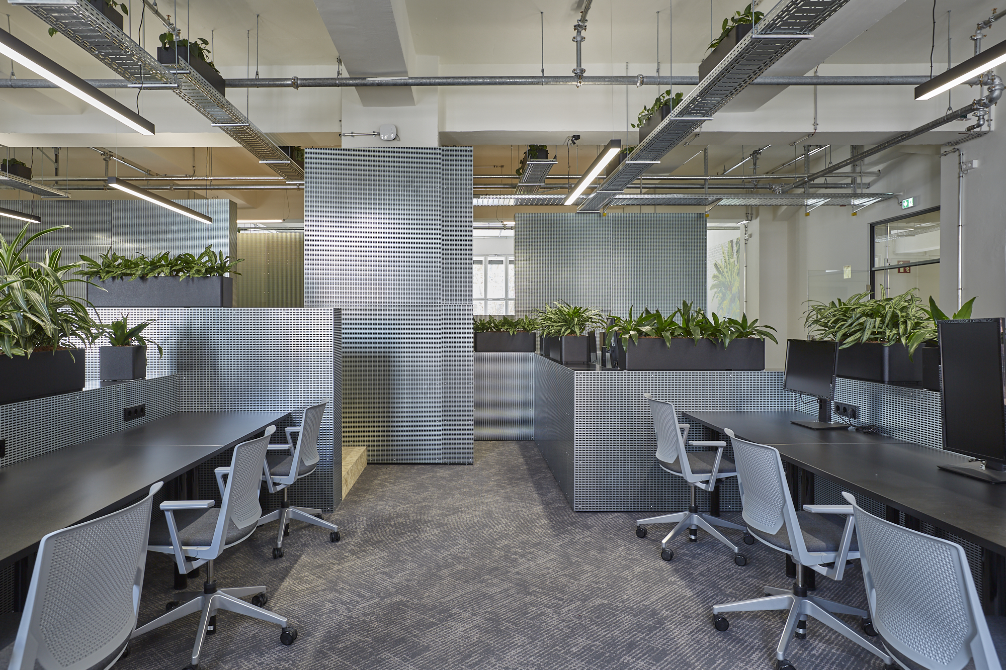 Wir haben die Drivery über die komplette Bürogestaltung der Industriefläche begleitet. Die Herausforderung bestand darin, das Innovationsnetzwerk des Unternehmens in dem Design der Arbeitsflächen widerzuspiegeln.